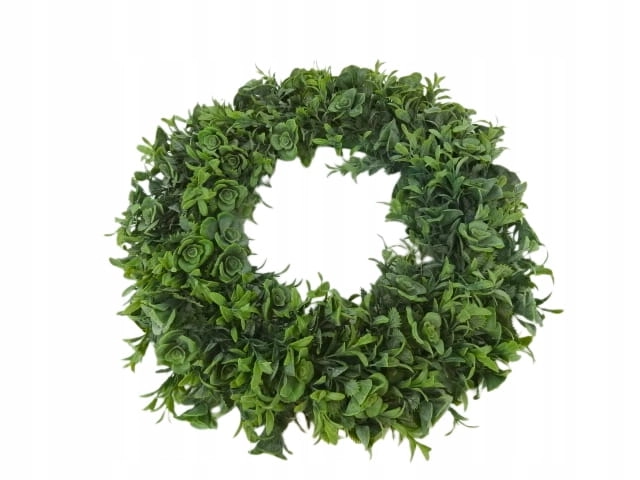 Stwórz wyjątkowy klimat w swoim domu, ogrodzie lub miejscu pracy dzięki naszemu sztucznemu wiankowi dekoracyjnemu o średnicy 40 cm. To ponadczasowa ozdoba, która zachwyca swoją naturalnością — gęste, soczyście zielone listki i subtelne rozetki przypominające drobne różyczki tworzą harmonijną, pełną formę, która wygląda jak żywa roślinność.