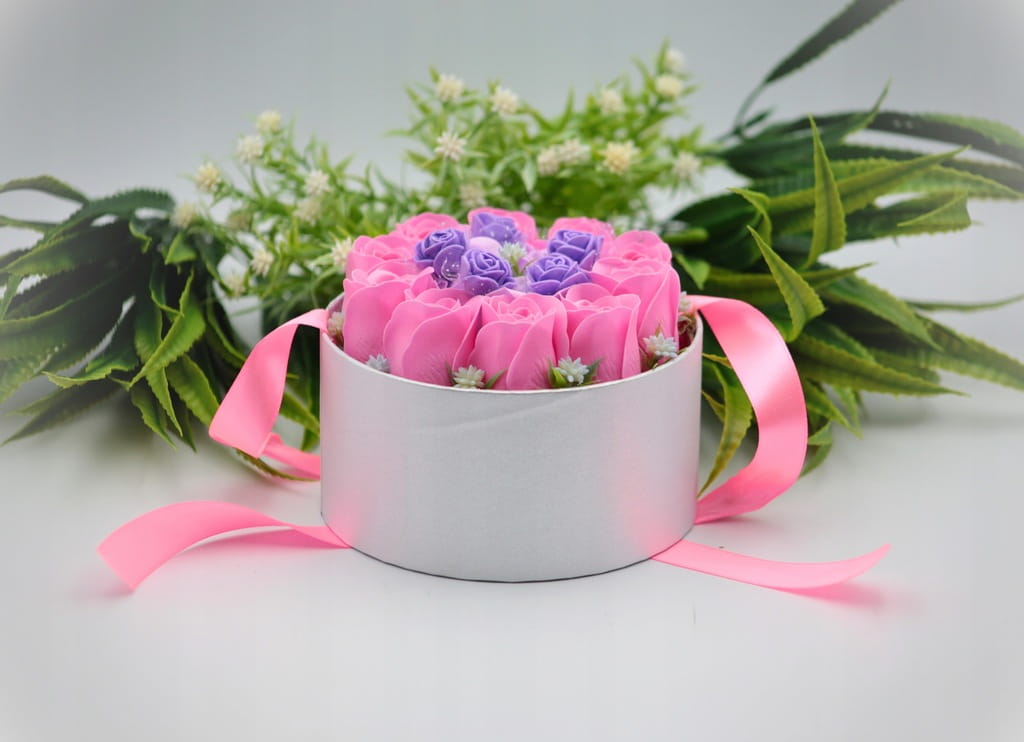 Będzie to świetny pomysł zamiast bukietu oraz nie zwiędnie tak jak żywe kwiaty. Kompozycja z kwiatów i róż mydlanych jest alternatywą dla wiecznych róż. Wieczne róże jako mydlane kwiaty nadadzą się do kąpieli, jako dekoracja czy prezenty dla pracowników. Super się sprawdzi jako dodatek do prezentu.