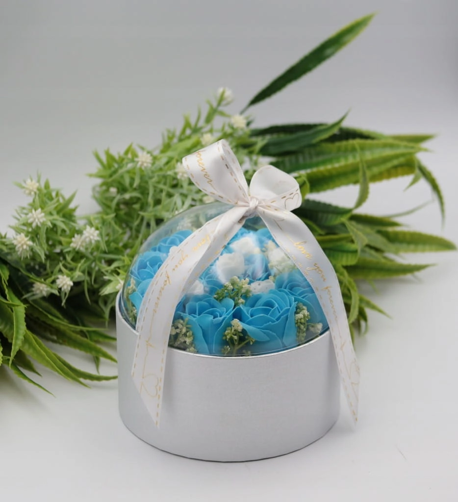Prezent w postaci flower box'u z kompozycją z mydlanych kwiatów idealnie sprawdzi się na Walentynki, Dzień Kobiet, Dzień Mamy, Dzień Babci, Dzień Dziadka, Dzień Taty, prezent pod choinkę, upominek, jako alternatywa żywych kwiatów, prezent na wesele, ślub, prezent dla pracowników, jako podziękowanie dla gości, prezent na dzień nauczyciela, prezent na urodziny, prezent dla dziewczyny czy ukochanej.
