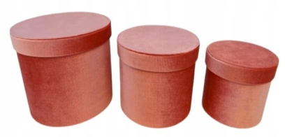 Oferujemy zestaw 3 stylowych, okrągłych pudełek w odcieniach ciemnego różu, pokrytych miękkim materiałem welurowym. Ich elegancki wygląd oraz praktyczna forma sprawiają, że są doskonałym rozwiązaniem zarówno do przechowywania, jak i do celów dekoracyjnych.