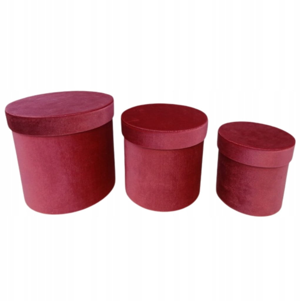 Zestaw 3 eleganckich pudełek okrągłych – welur/zamsz – ciemny róż