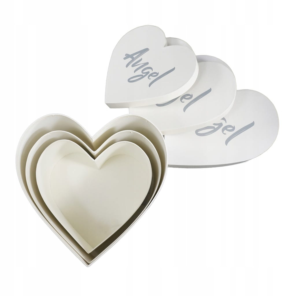 Elegancki komplet flowerboxów w kształcie serca, doskonały jako oprawa dla kwiatów i prezentów na każdą okazję.