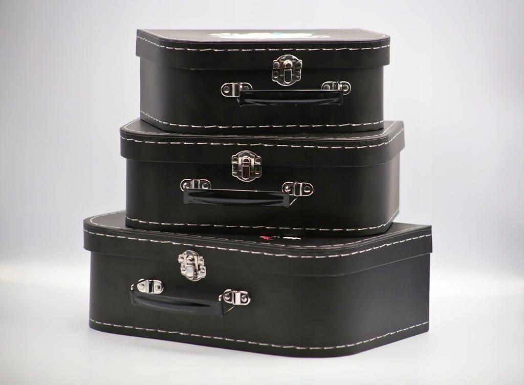 Wykonany z dużą starannością, estetyczny i pojemny komplet kuferków - idealny na prezent.