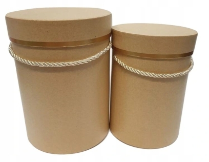 ZESTAW 2 OKRĄGŁYCH PUDEŁEK OZDOBNYCH – KRAFT NATURALNY