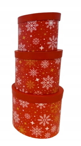 Zestaw 3 pudełek świątecznych – czerwone okrągłe pudełka ozdobne ze śnieżynkami �