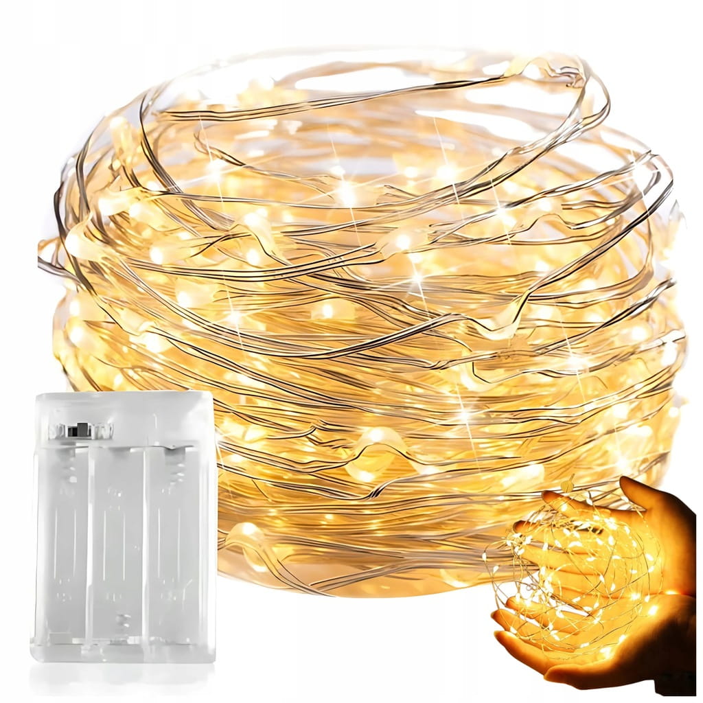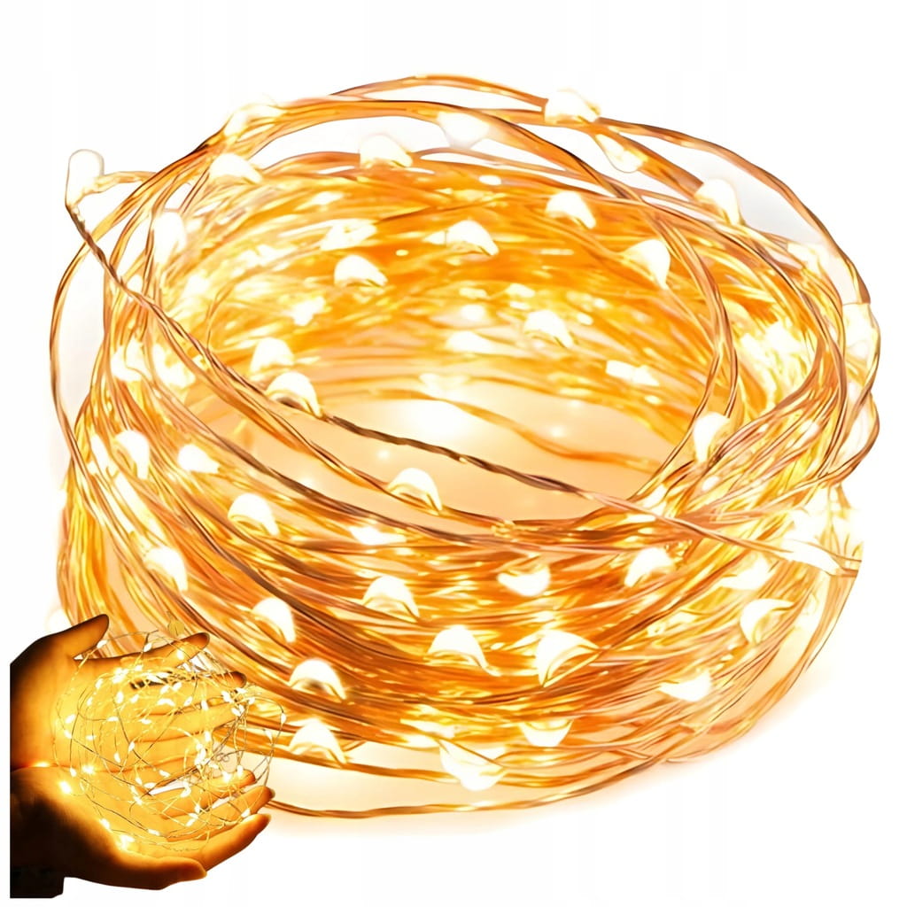 LAMPKI DRUCIKI LED 10M 100 LAMPEK BIAŁE CIEPŁE NA BATERIE MIKRO ŚWIATEŁKA LED
