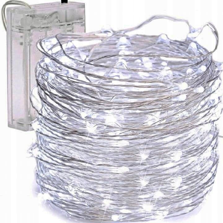 LAMPKI CHOINKOWE BATERIE DRUCIKI 100 LED 9.6m ZIMNE