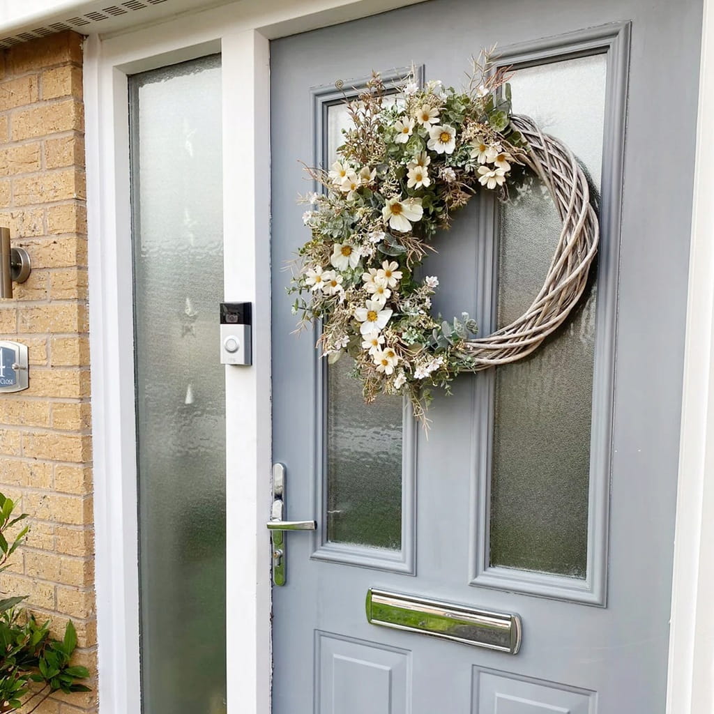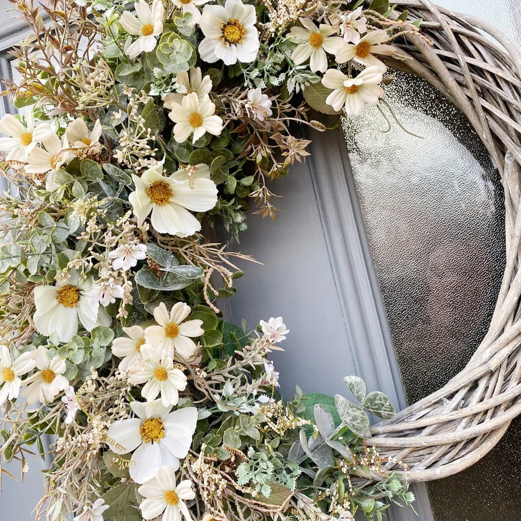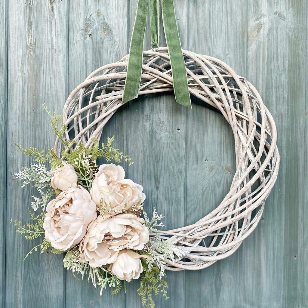 - Cały wianek można także udekorować przeróżnymi kwiatami i przymocować do drzwi wejściowych.