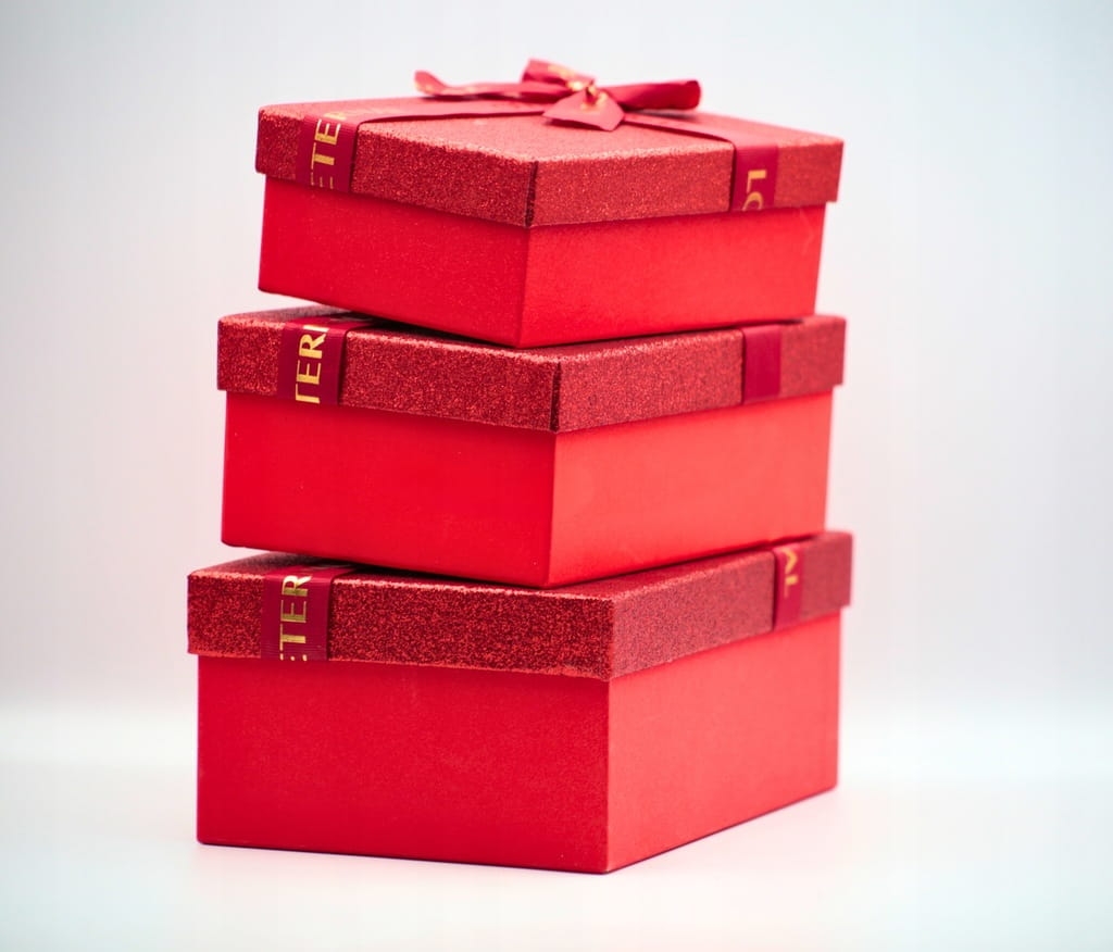 Zestaw 3 Pudełek Prezentowych Czerwone Brokatowe