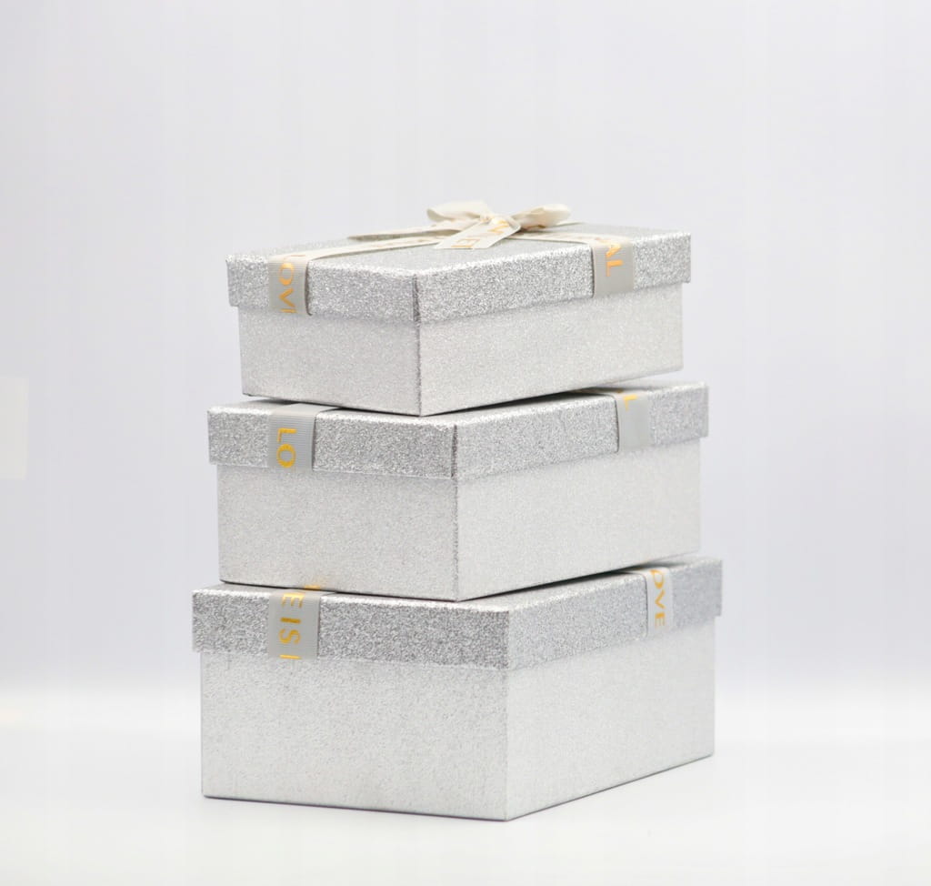 Zestaw 3 Pudełek Prezentowych Srebrne Brokatowe